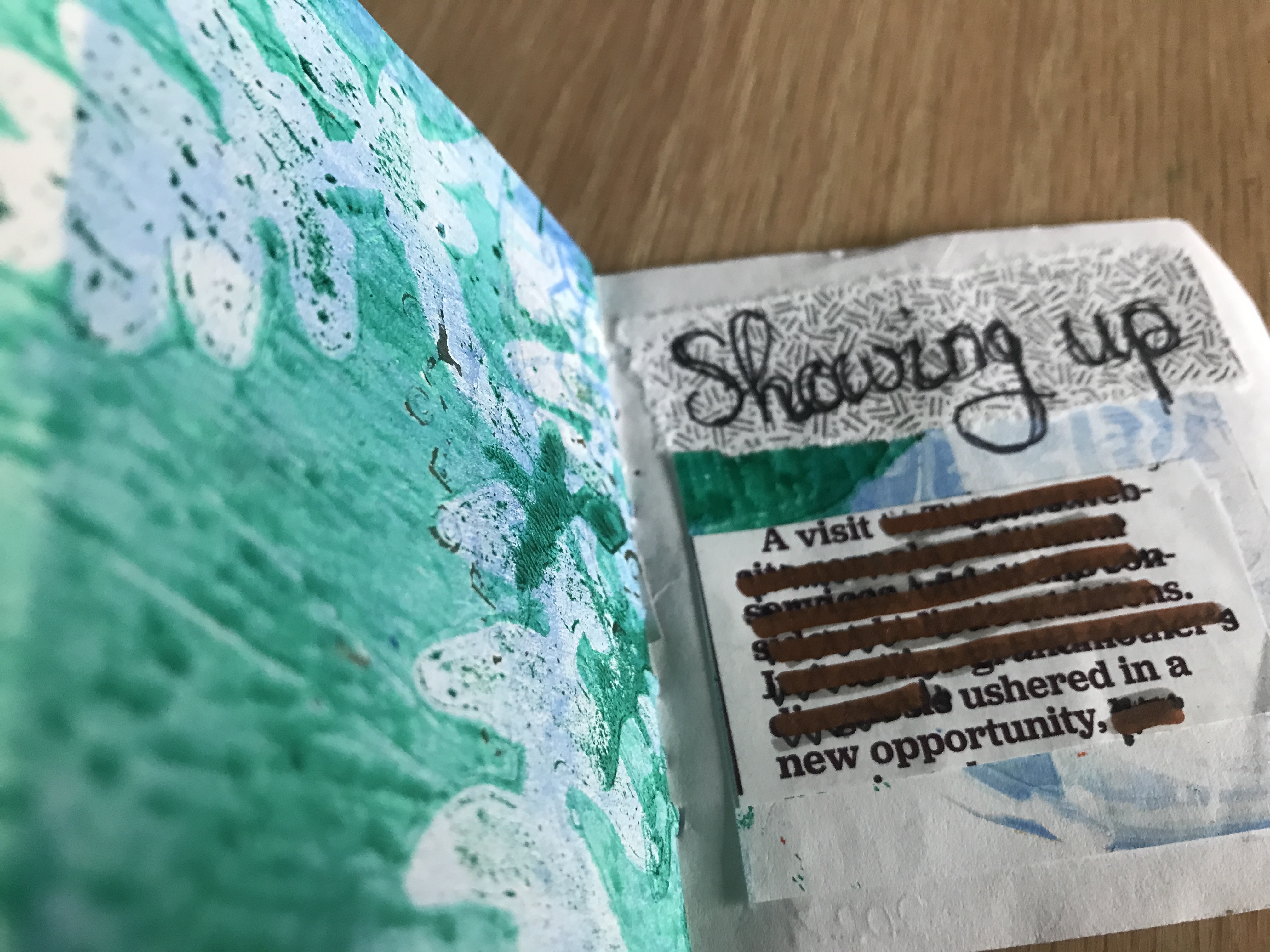 My altered quote,”A visit ushered in a new opportunity,” reiterates the importance of showing up. It acts as a counterbalance to isolation. Showing up is not just turning up at a venue physically, but being there to do one’s part to help self and others. Showing up is to take on something new and finish it. It also is taking responsibility for things that did not go right. I constantly challenge myself and show up by completing my task. I try to give back to those who show up for me. When I show up, it automatically ushers in a new opportunity.
