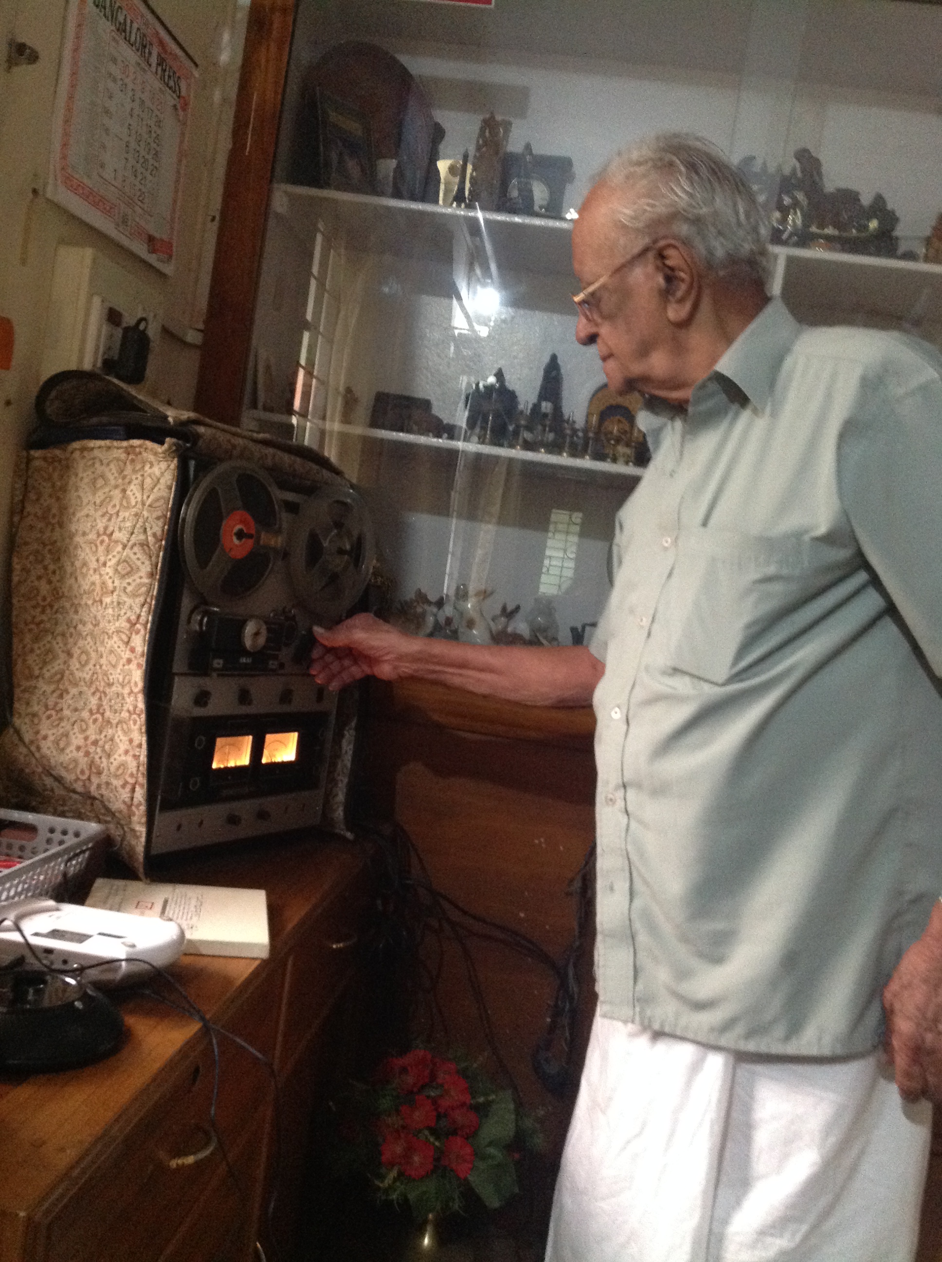 Mr.V.S.R. can fix anything, and I recall we never had a use and throw mentality towards electrical gadgets. Does that spill over to how you treat people too, I wonder. At ninety, he has all the technology ranging from smart new devices to the wise old technology. He holds a massive collection of varied memories, voices, videos, music, celebration, recounting, and much, much more. From the 78 RPM records to the reel-to-reel spool tape recorder, cassettes, CD, VCR, DVD players, he has them all in tip-top condition. While the smart phone with Bluetooth speakers serve as his constant music companion, he will play with the other equipment as well, transferring data, which are true memories from the old to the new. He’s a treasure trove of information, rare music, and special memories. He transfers all these to share freely with his friends of all ages.